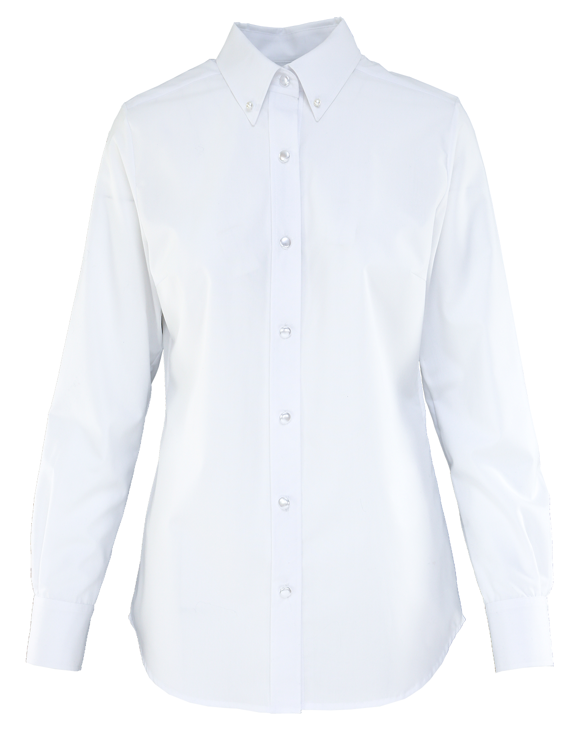 Bawełniana koszula w białym kolorze z lekko wydłużonym kołnierzem. Zapinana z przodu na perłowe guziki. Tył ozdobiony kontrafałdą zapewniającą swobodę ruchu. Łatwa do prasowania. Bardzo wygodna i niezbędna w szafie każdej kobiety.
