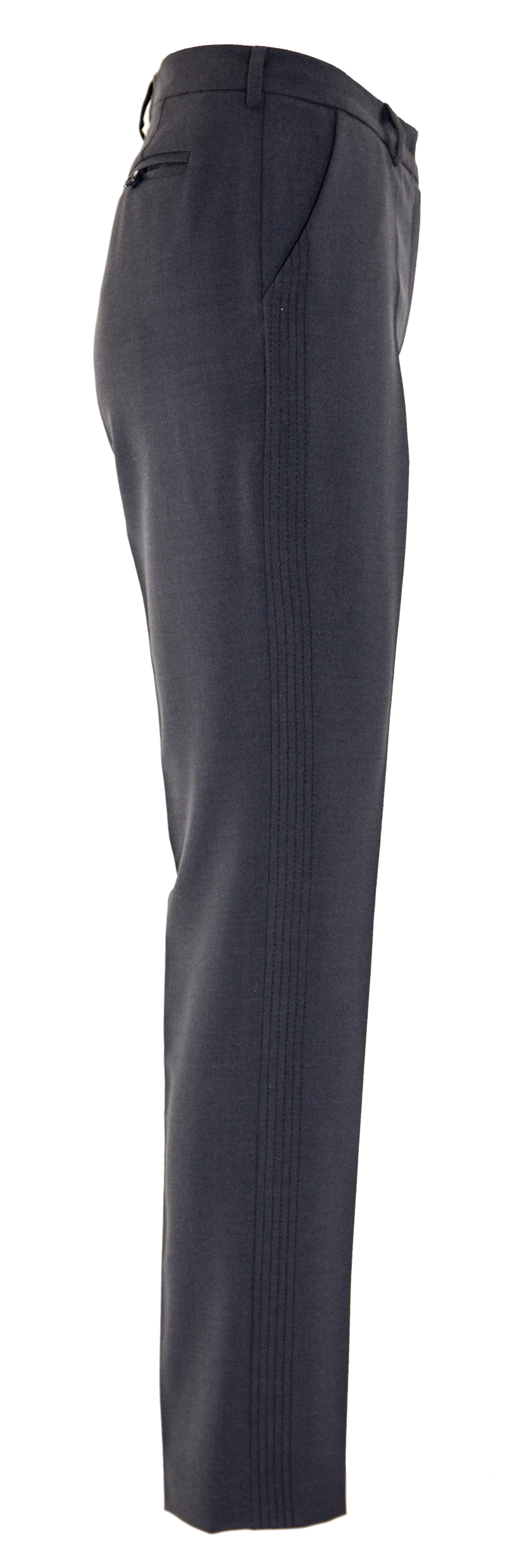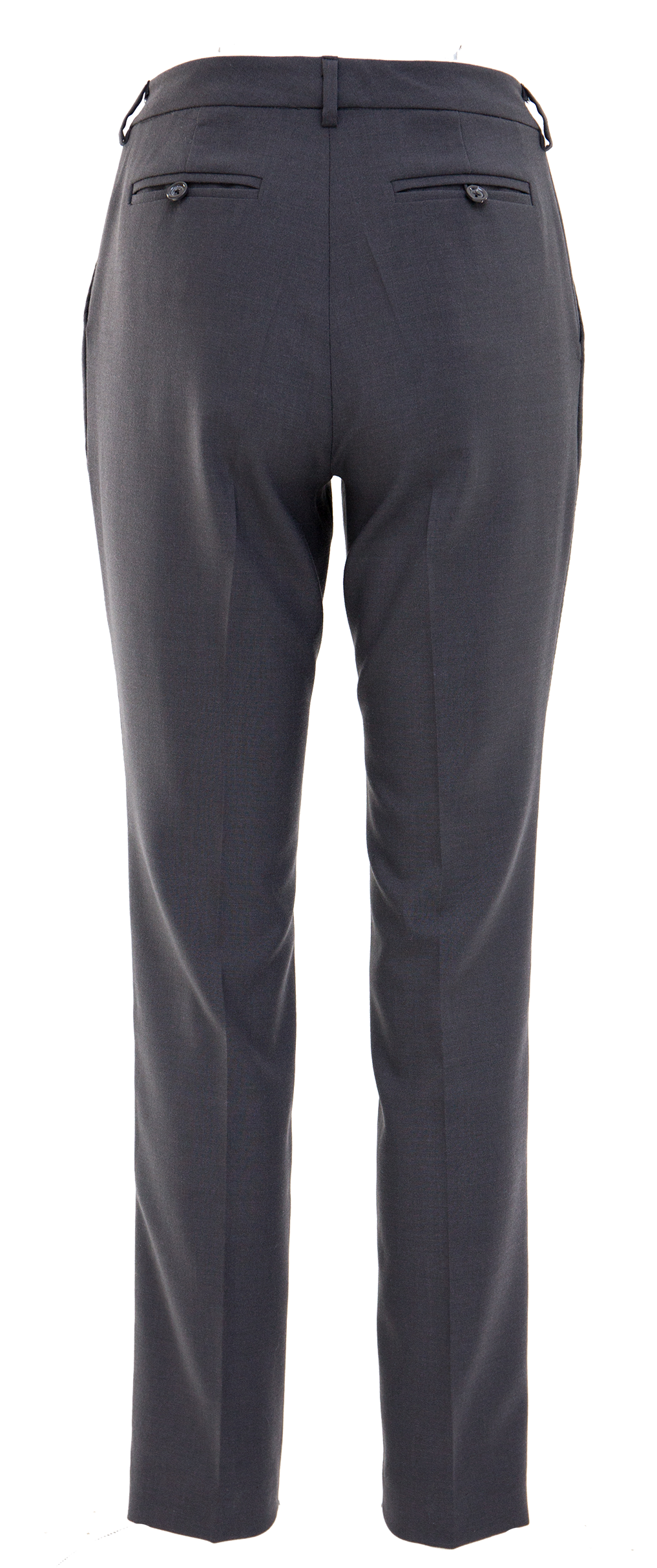 Klasyczne cygaretki z kantami. Uszyte z ciemnoszarej tkaniny z dodatkiem elastanu. Mają kieszenie wpuszczane z przodu i odszyte w ramce z tyłu. Bardzo wygodne. Na bokach wykonane są czarnymi nićmi ozdobne przeszycia tworzące lampasy. Doskonale sprawdzą się jako baza do stylizacji codziennych lub w połączeniu z wizytową bluzką oraz butami typu szpilki na bardziej eleganckie okazje.